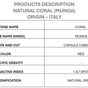 – It is important to have the coral set in gold, silver, panchdhatu, Ashtha dhatu copper for astrological purposes. The ring is ideally worn on a Tuesday morning during the waxing phase of the moon after reciting the appropriate mantra for Mars.