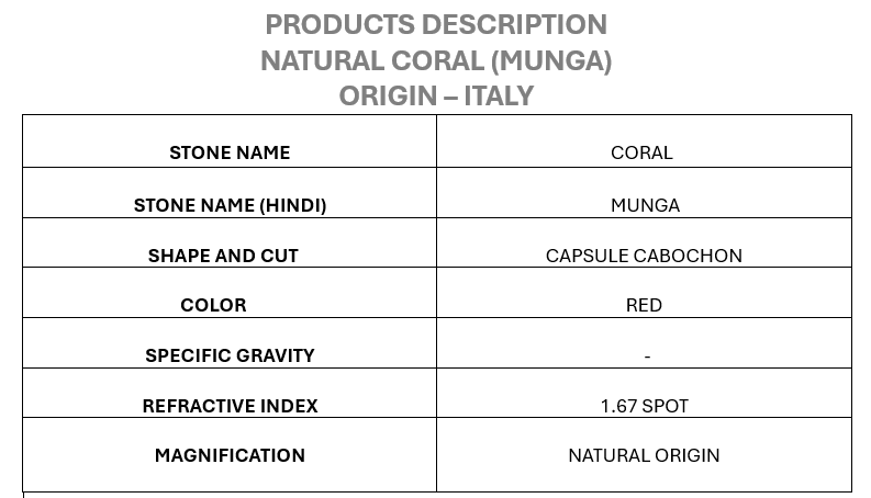 NATURAL RED CORAL Capsule Shape (लाल कैप्सूल मूंगा)