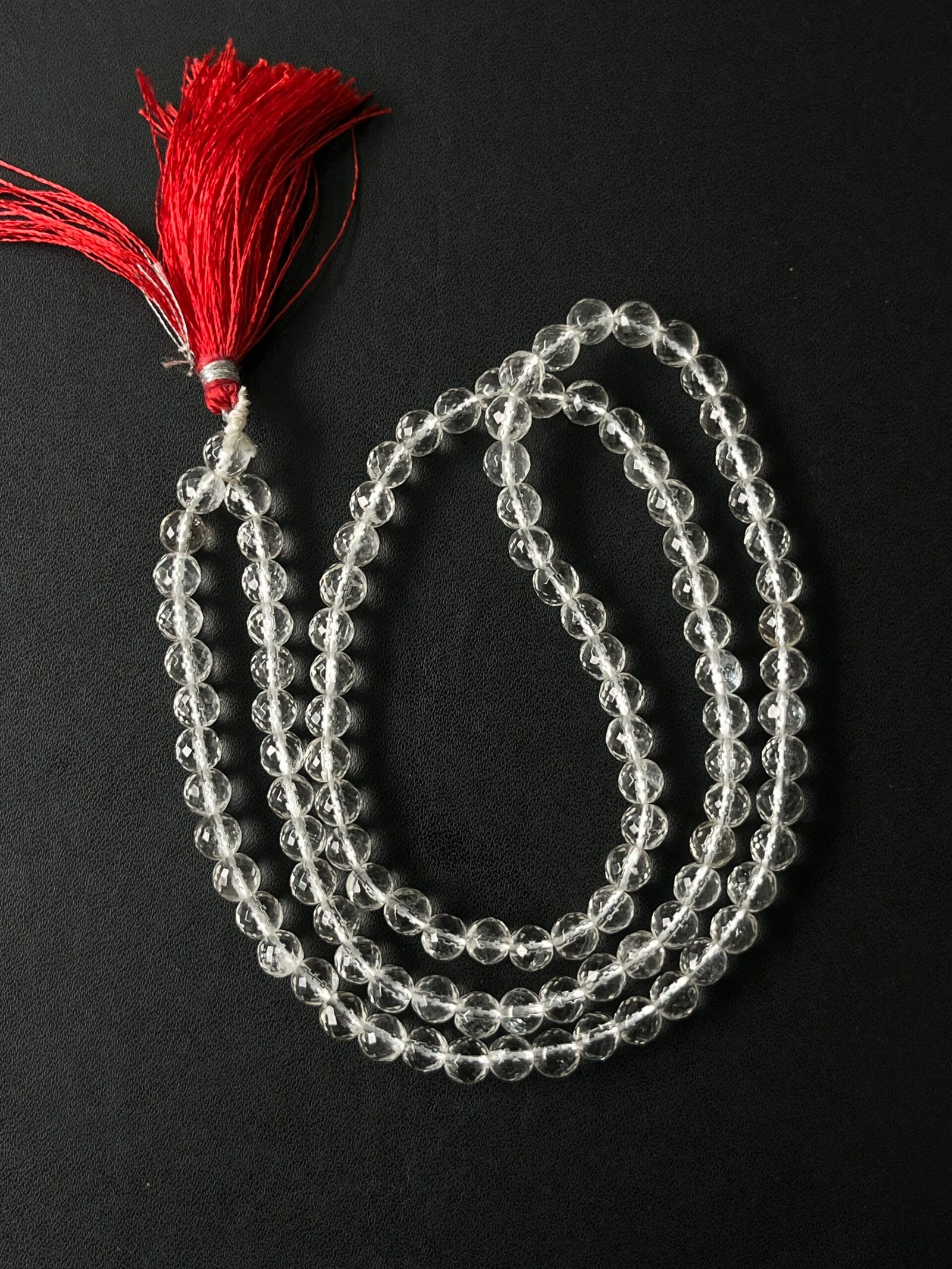 Natural Crystal (SFATIK MALA) 108 Beads (Diamond Cutting)